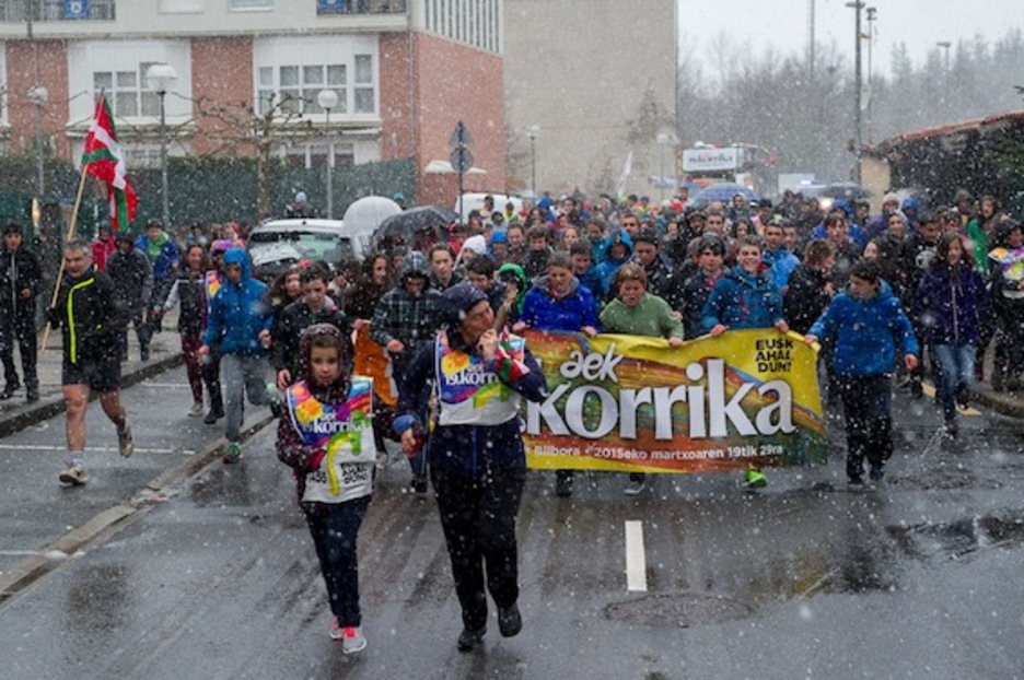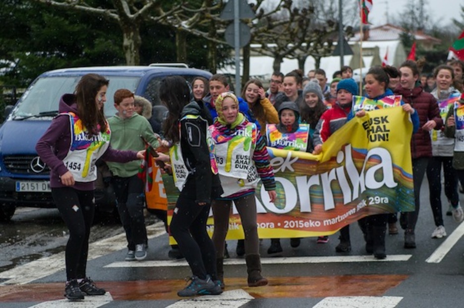 Gaztetxoenak nagusi izan dira Korrika Murgiatik igaro denean. (Juanan RUIZ/ARGAZKI PRESS)