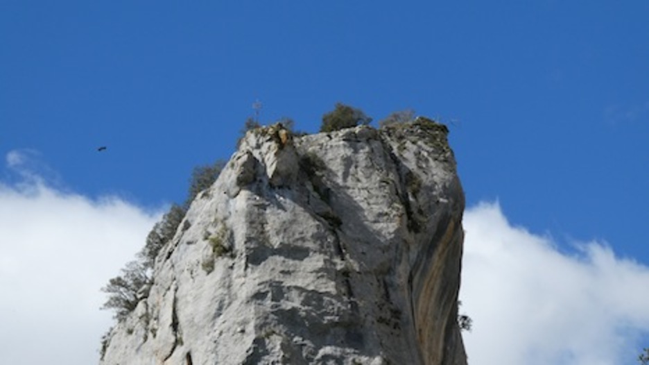 La cruz de los cencerros se vislumbra en lo alto de la Peña del Cantero. (Iñaki VIGOR)