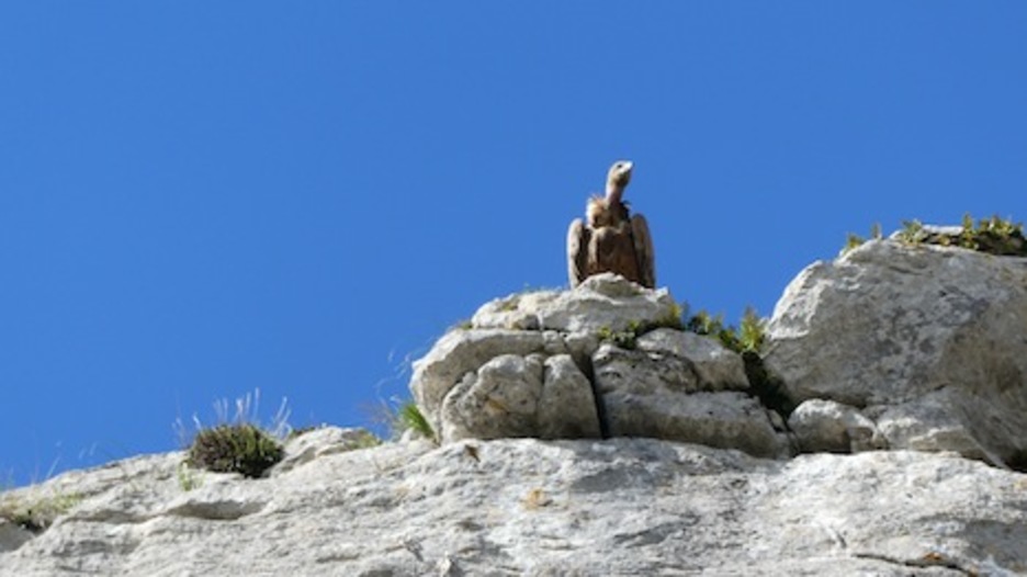 Uno de los habituales buitres de la zona, posado en una roca. (Iñaki VIGOR)