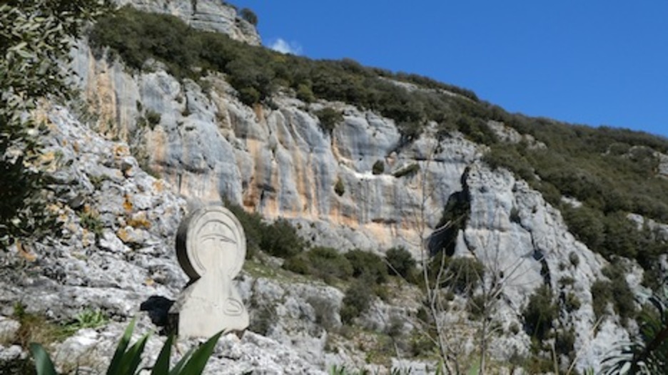 Espectacular silueta que recuerda a un moai, sin duda el monolito más emblemático de la sierra de Sarbil. (Iñaki VIGOR)