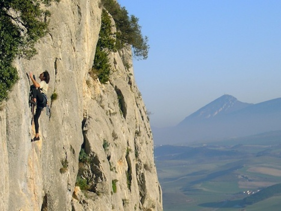 Escalada por la peña con Elomendi de fondo. (Iñaki VIGOR)