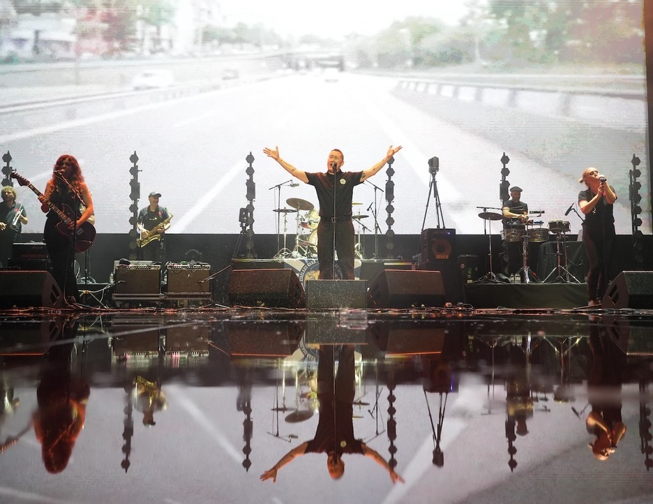 El músico, reflejado en un escenario lleno de agua. (Jon Urbe | Foku)