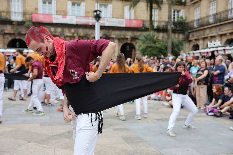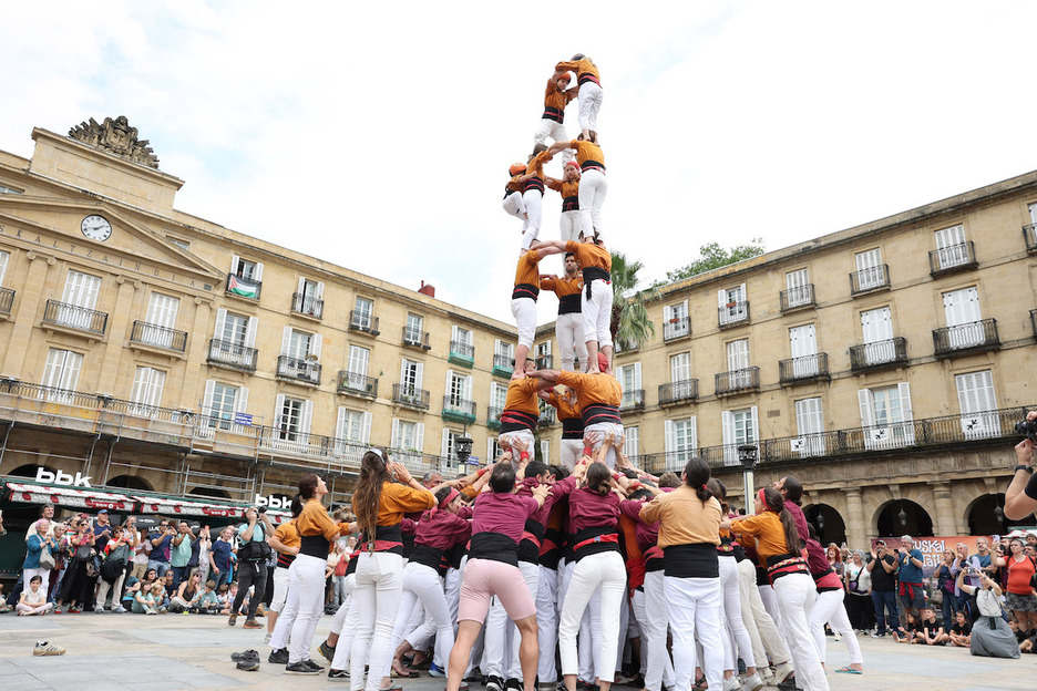 Castellersak eraiki dituzte Plaza Barrian. (Oskar MATXIN EDESA | FOKU)
