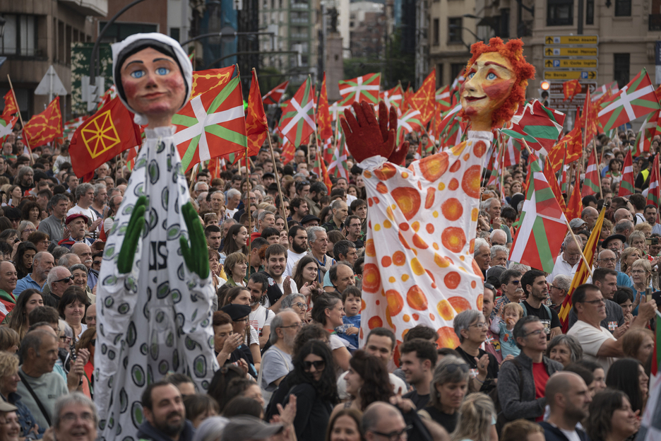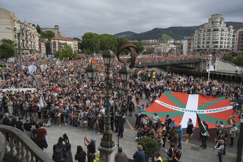 Milaka lagun bildu dira Gure Eskuk Bilbon antolatutako mobilizazio nazionalean. (NAIZ)