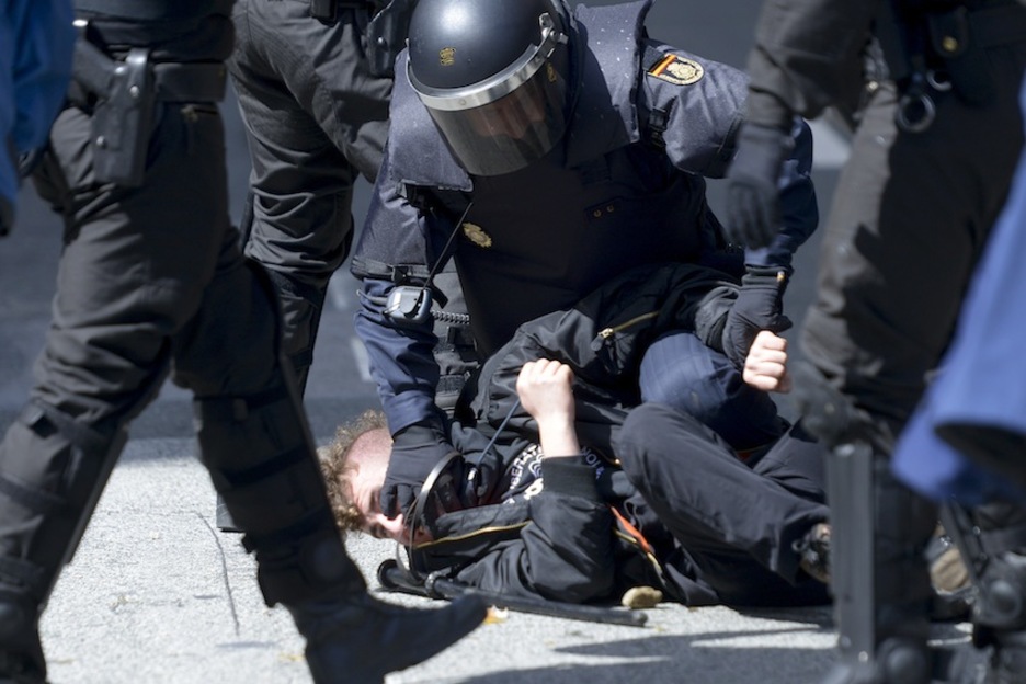 Polizia gogor oldartu da manifestarien aurka. (Iñigo URIZ/ARGAZKI PRESS)
