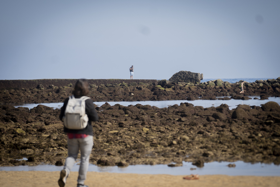 Santa Klara irlaraino ia oinez joan zitekeen Ondarretako hondartzatik, Donostian. (Gorka Rubio | Foku)