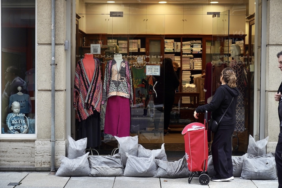 Lur-zakuak jarri dituzte hainbat dendek. (Monika DEL VALLE | FOKU)