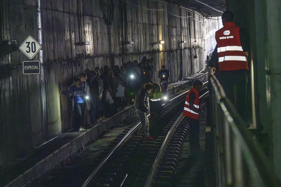 Viajeros del metro saliendo de los vagones durante el apagón de Bilbo. (Mikel MNEZ. DE TRESPUENTES | FOKU)