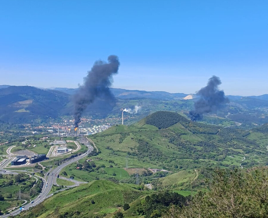 El humo que ha salido de la planta de Petronor en Muskiz por motivos de seguridad ha dado pie a alertas sin base real.. (NAIZ)
