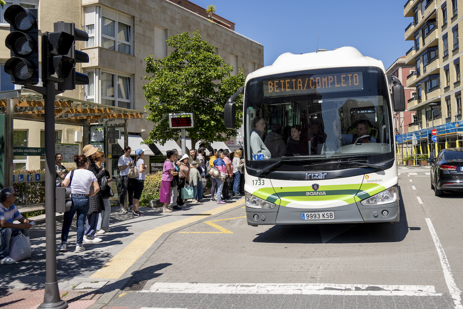 Al no funcionar ni tranvía ni metro, los autobuses se han llenado. En la imagen, Getxo. (Mikel MARTÍNEZ DE TRESPUENTES | FOKU)