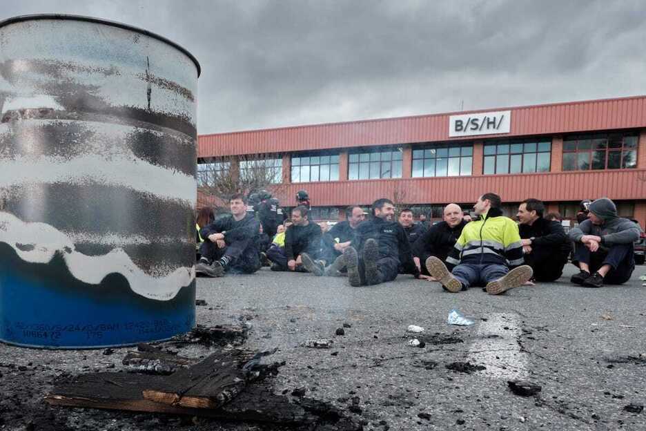 Los trabajadores de BSH cortan el acceso a la fábrica de Ezkirotz