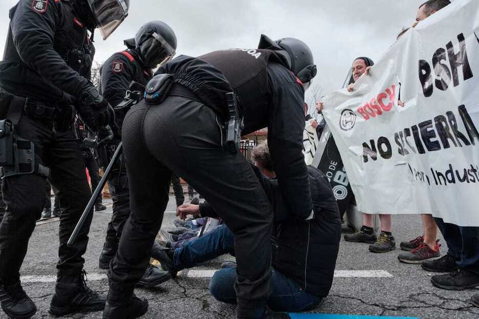 La Policía Foral comienza a retirar a los trabajadores. (Iñaki MONTES | LAB)