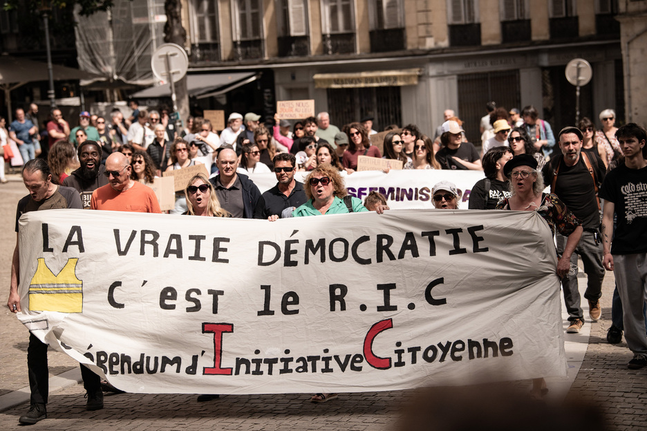Herritarren Ekimenerako Erreferendumaren (HEE) eskaera izan da ere, 2018tik jaka horien mugimenduaren aldarrikapen nagusi bilakatu den herri-ekimeneko dispositibo proposamena. (Patxi BELTZAIZ)