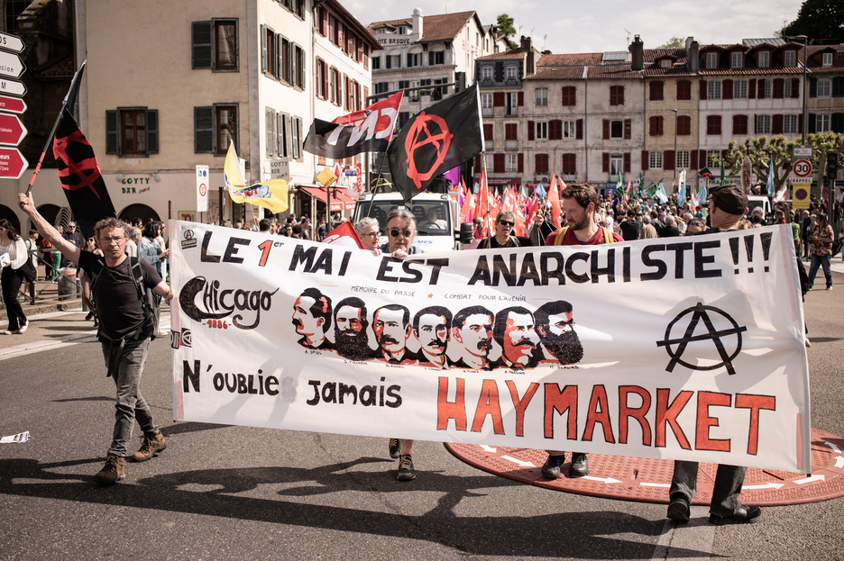 Haymarket Squareko sarraskia gogoratu dute anarkistek, Estatu Batuetako zortzi orduko eguneko borrokaren gailurtzat hartua dena, 1886an Chicagon gertaturikoa. (Patxi BELTZAIZ)