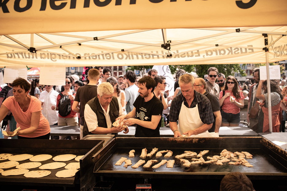 Ondotik, taloak jateko parada eskaini dute sindikatuen herrixkan. (Patxi BELTZAIZ)