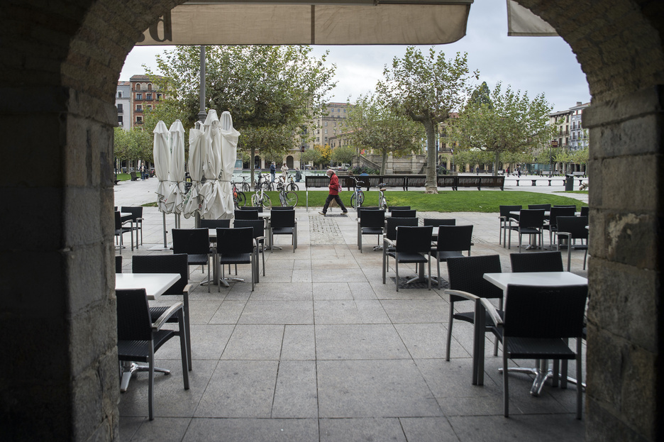 Tabernak itxita Iruñeko Gaztelu Plaza ia huts batean. (Iñigo URIZ/FOKU)