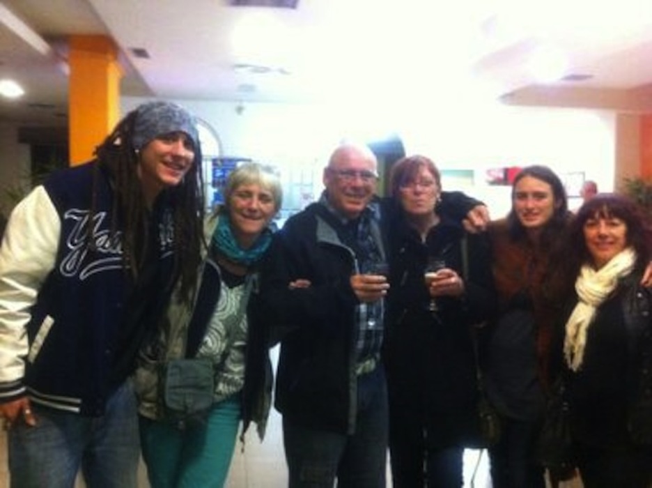 Iñaki Orotegi, con sus allegados en el exterior de Zuera. (@karkharitz)
