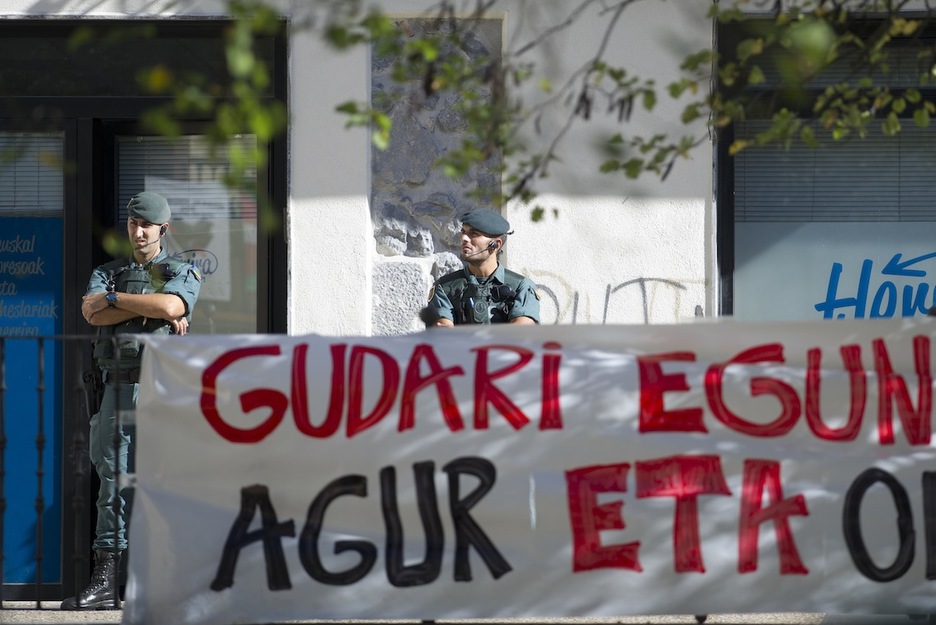 Dos militares ante la sede de Hernani. (Juan Carlos RUIZ/ARGAZKI PRESS)