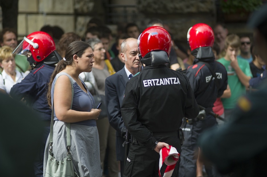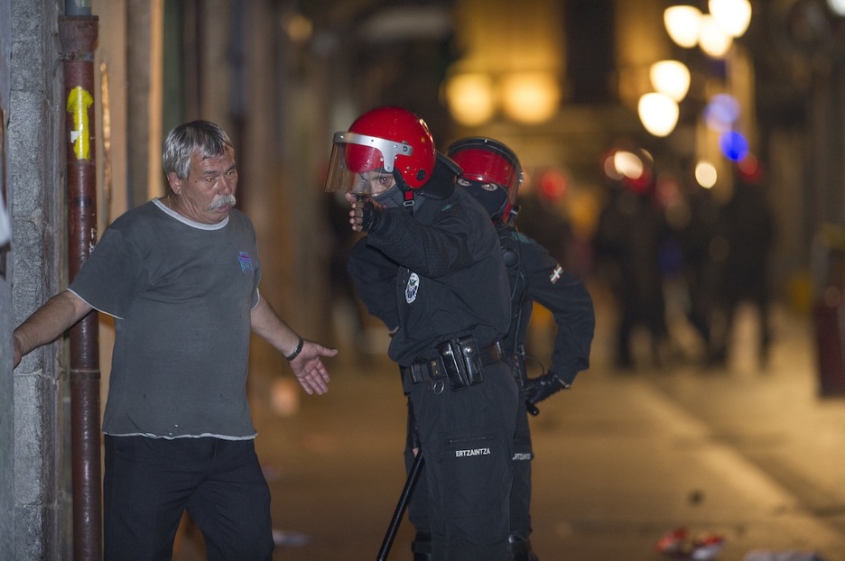Dos ertzainas dando órdenes a un hombre. (Juan Carlos RUIZ/ARGAZKI PRESS)