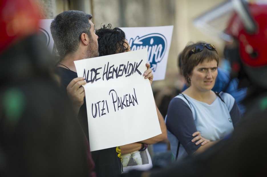 Una persona exhibe un cartel con el lema ‘Alde hemendik. Utzi bakean’ en Hernani. (Juan Carlos RUIZ/ARGAZKI PRESS)