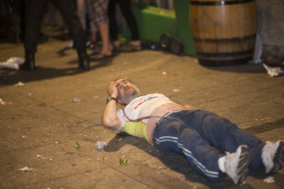Un hombre yace en el suelo tras la carga de la Ertzaintza. (Juan Carlos RUIZ/ARGAZKI PRESS)