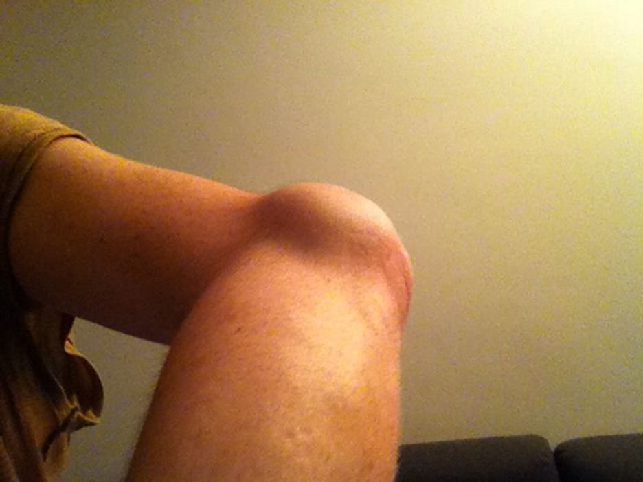 Una persona con el codo hinchado tras la carga de la Ertzaintza. (NAIZ.INFO)