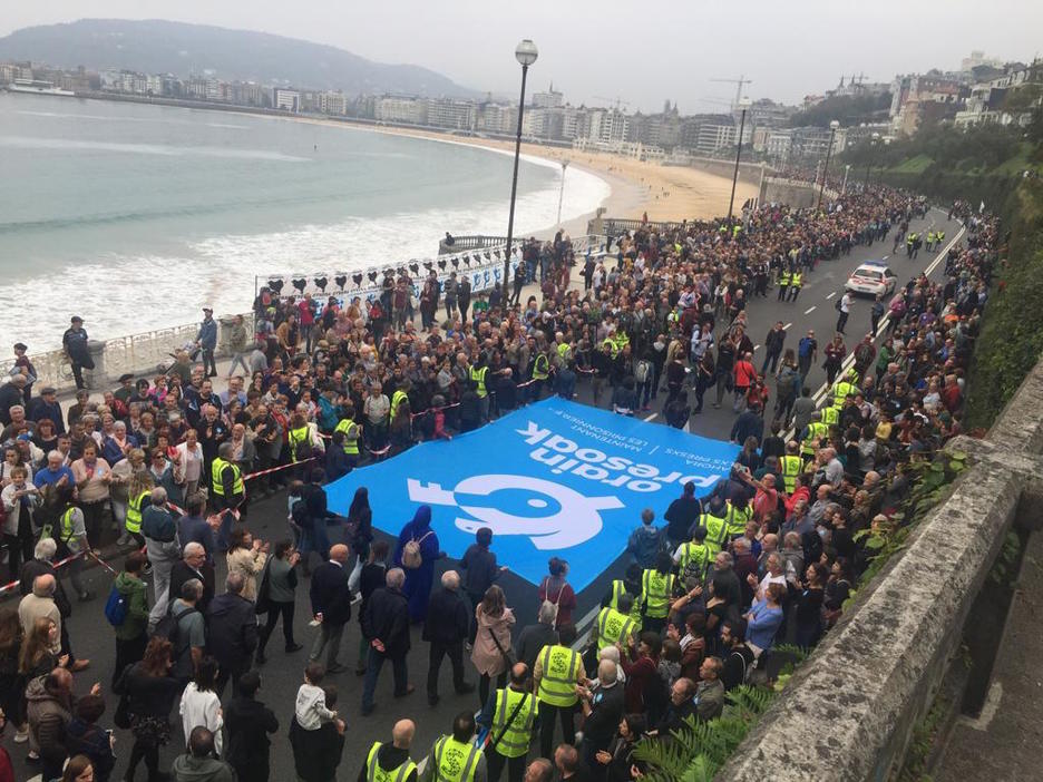 Orain Presoak dinamikak antolatutako manifestazioak 37.000 lagun bildu ditu Donostian, GARAk eta NAIZek egindako kontaketaren arabera. Espetxe politika berehala aldatzearen eta sufrimienduarekin amaitzearen beharra nabarmendu dute, eta elkarbizitzan eta bakean aurrera egiteko «denok elkarrekin» lan egiteko deia egin dute.
