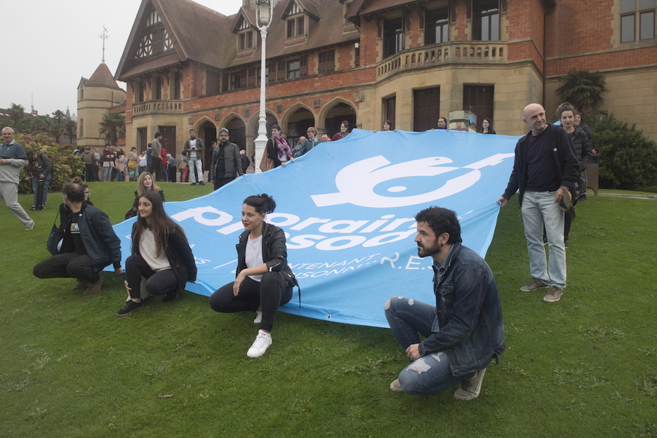 Miramar jauregian bakea eta elkarbizitzaren aldeko ekitaldia egin dute manifestazioaren aurretik. (Jon URBE/FOKU)