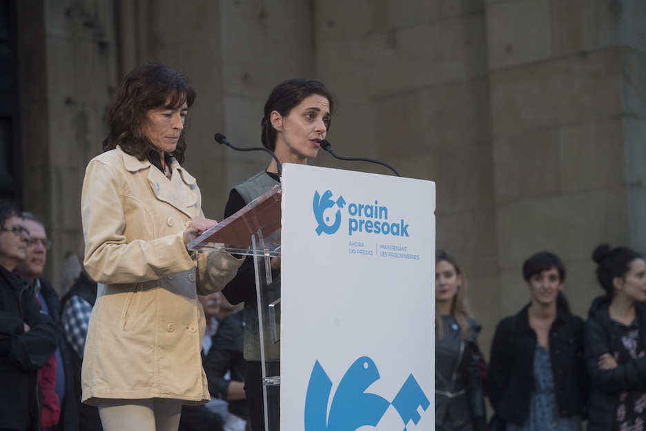 Arantza Aldezabal eta Laura Gomezek irakurri dute Orain Dinamikaren agiria. (Jon URBE/FOKU)