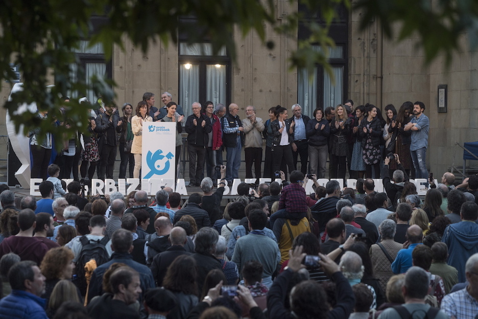 Orain Presoak dinamikarekin bat egin duten eragile eta norbanakoak, oholtzan. (Jon URBE/FOKU)