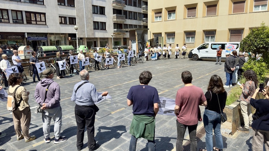 Donostian Antigua auzoko Gaskuña plazan egin dute geldialdia. (Aitor KARASATORRE | FOKU)