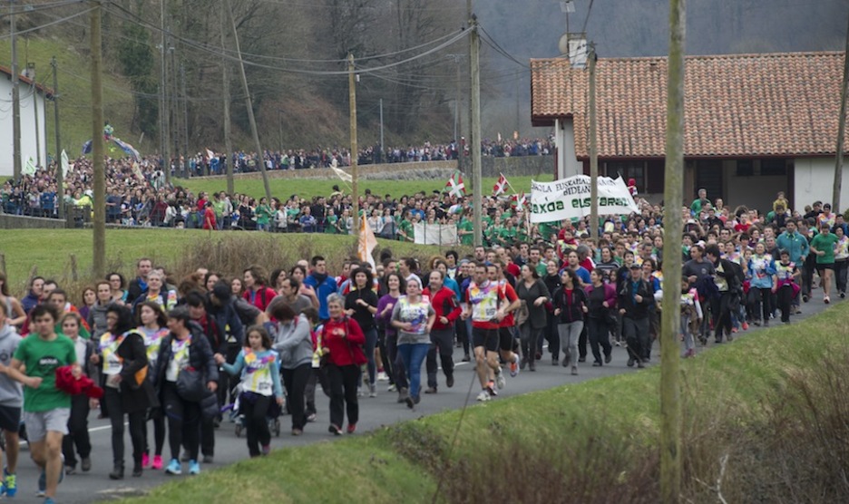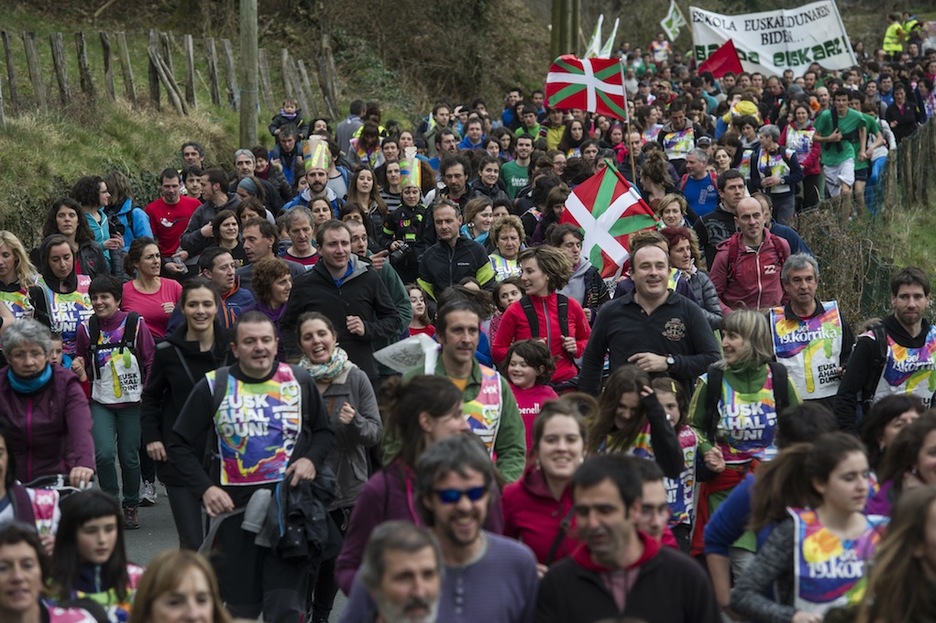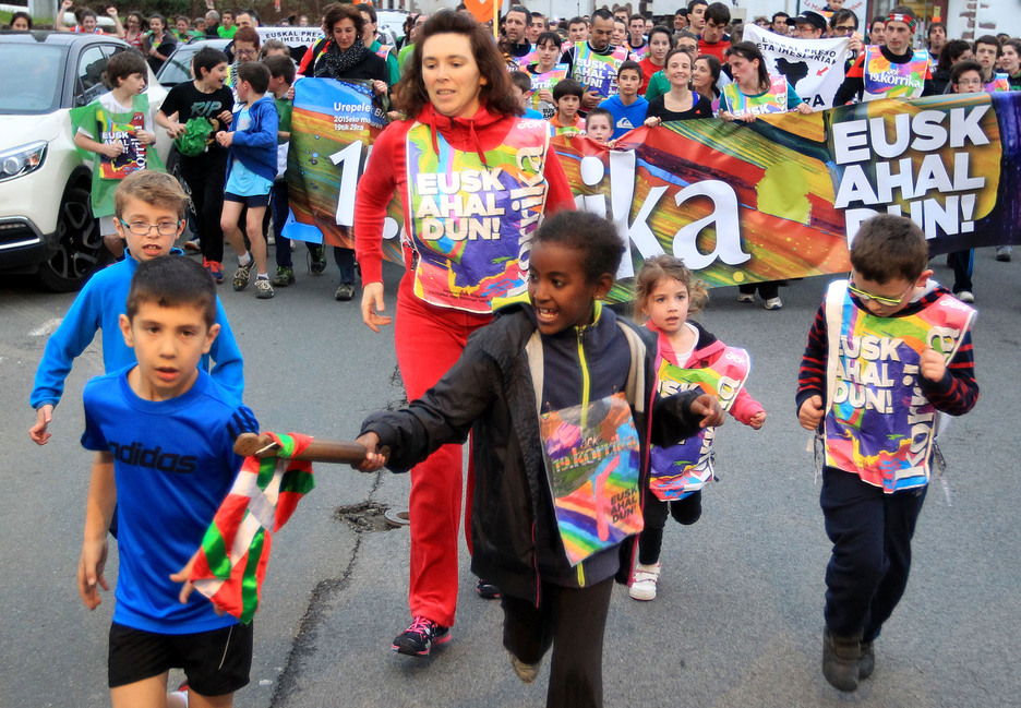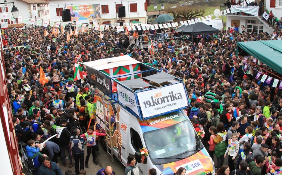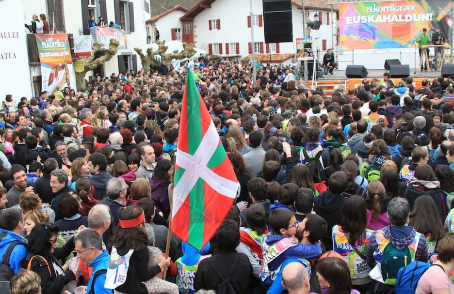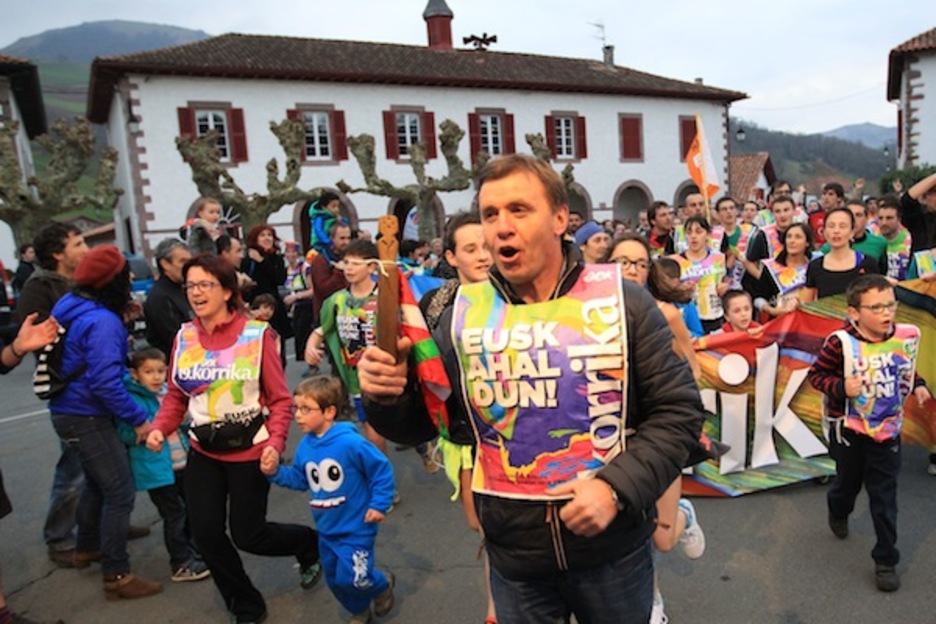 La pequeña localidad bajonavarra de Urepele, en el valle de Aldudes, se ha visto repleta de gente en la salida de la edición número 19 de Korrika.