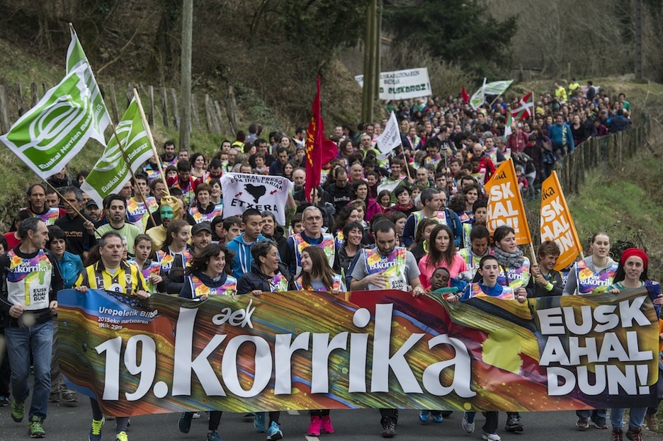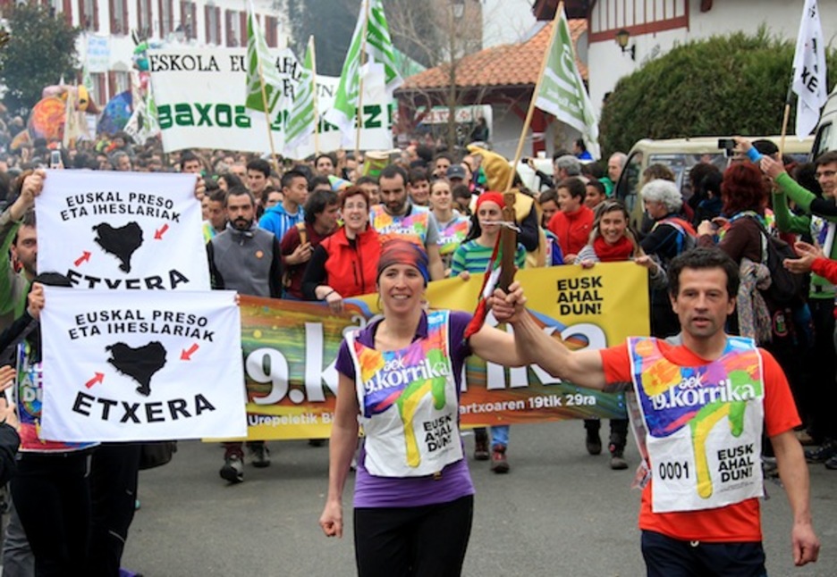 Presoen aldeko aldarrikapenak Korrikan ere present. (Bob EDME / ARGAZKI PRESS)
