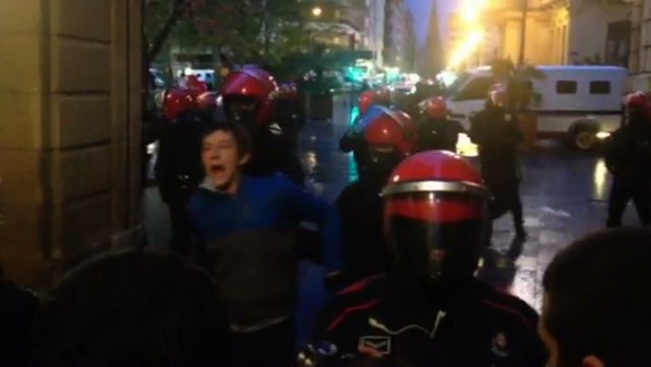 Ertzaintzak Aske Gunean zeuden gazteak banan banan atera ditu eta Kale Nagusira eraman ditu.