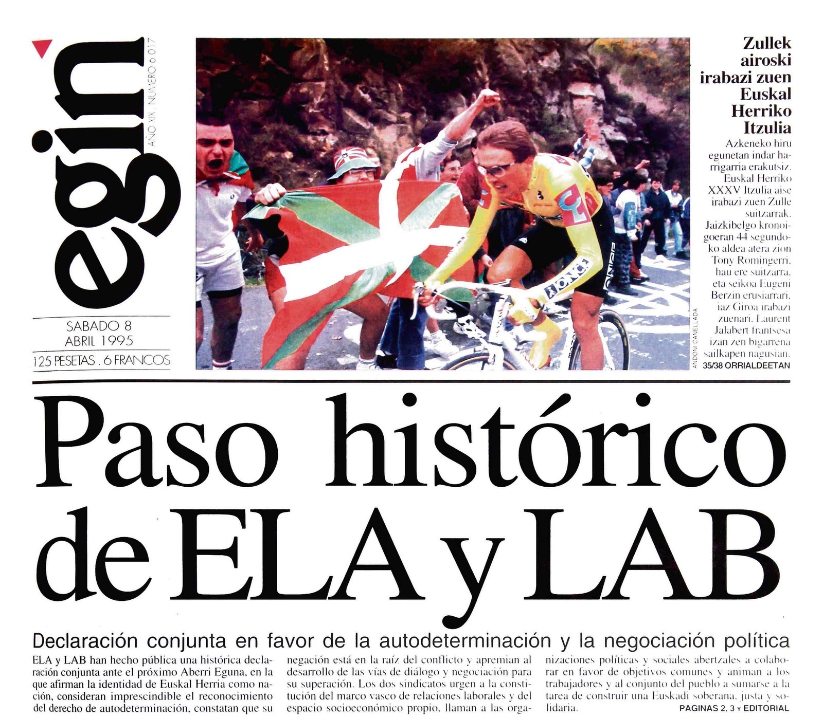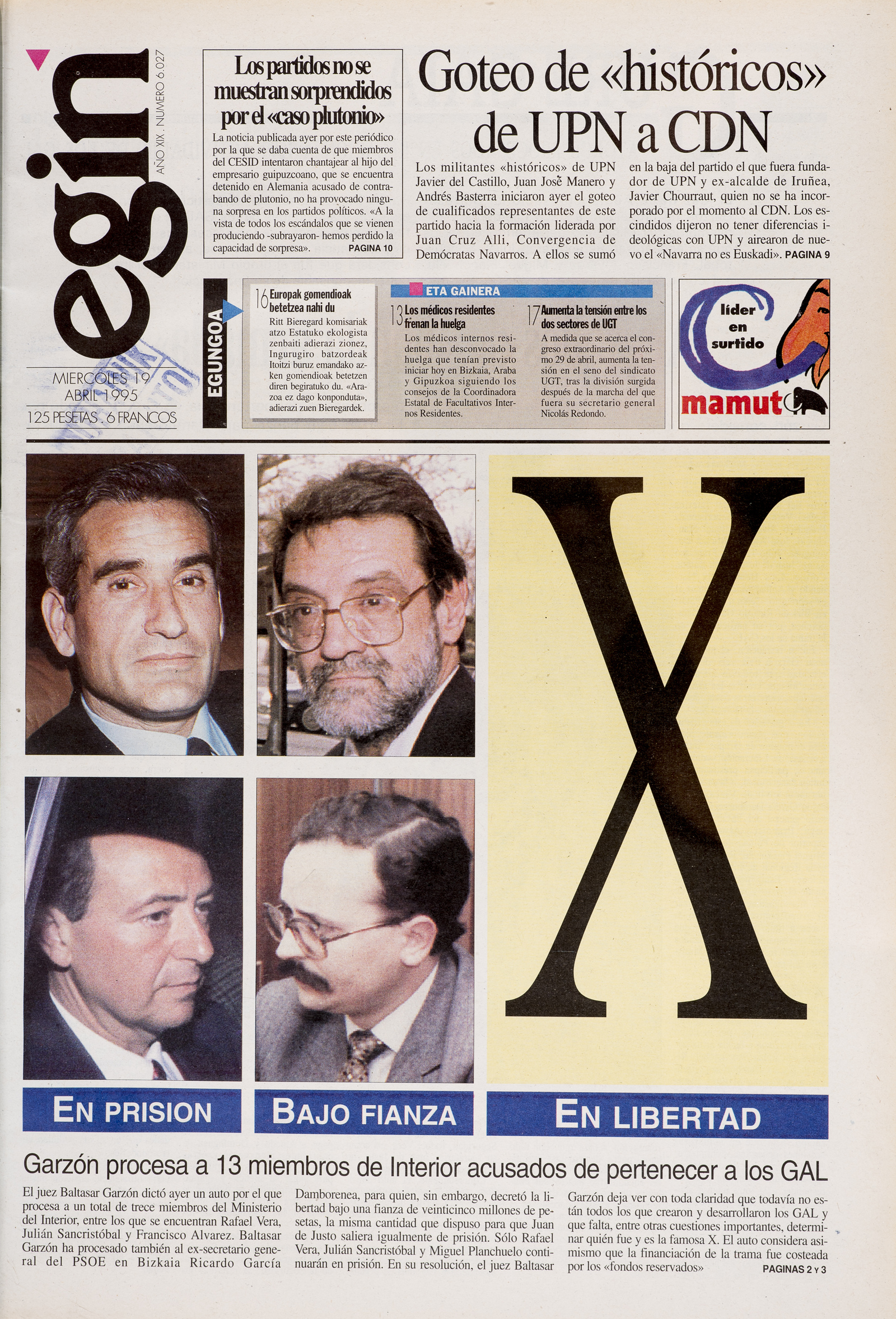 Portada de 'Egin' del 19 de abril de 1995.
