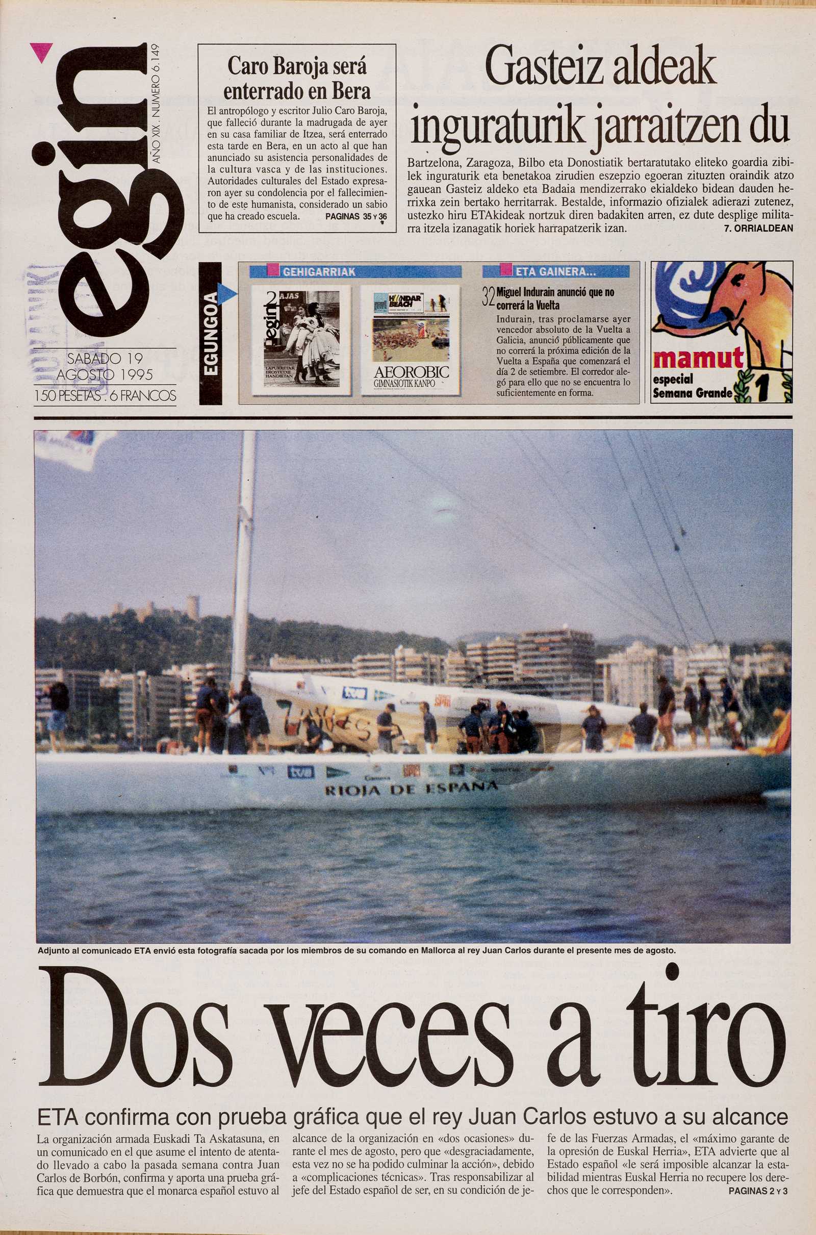 Portada de 'Egin' del 19 de agosto de 1995.