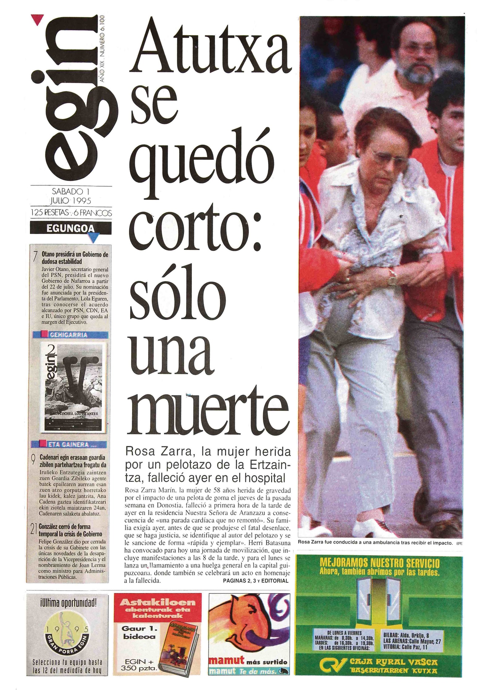 Portada de 'Egin' del 1 de julio de 1995.