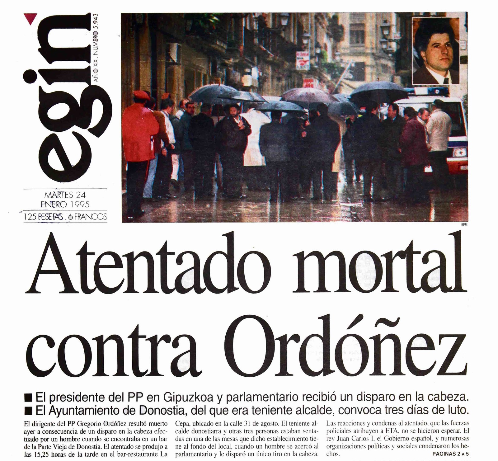 Portada de 'Egin' del 24 de enero de 1995.