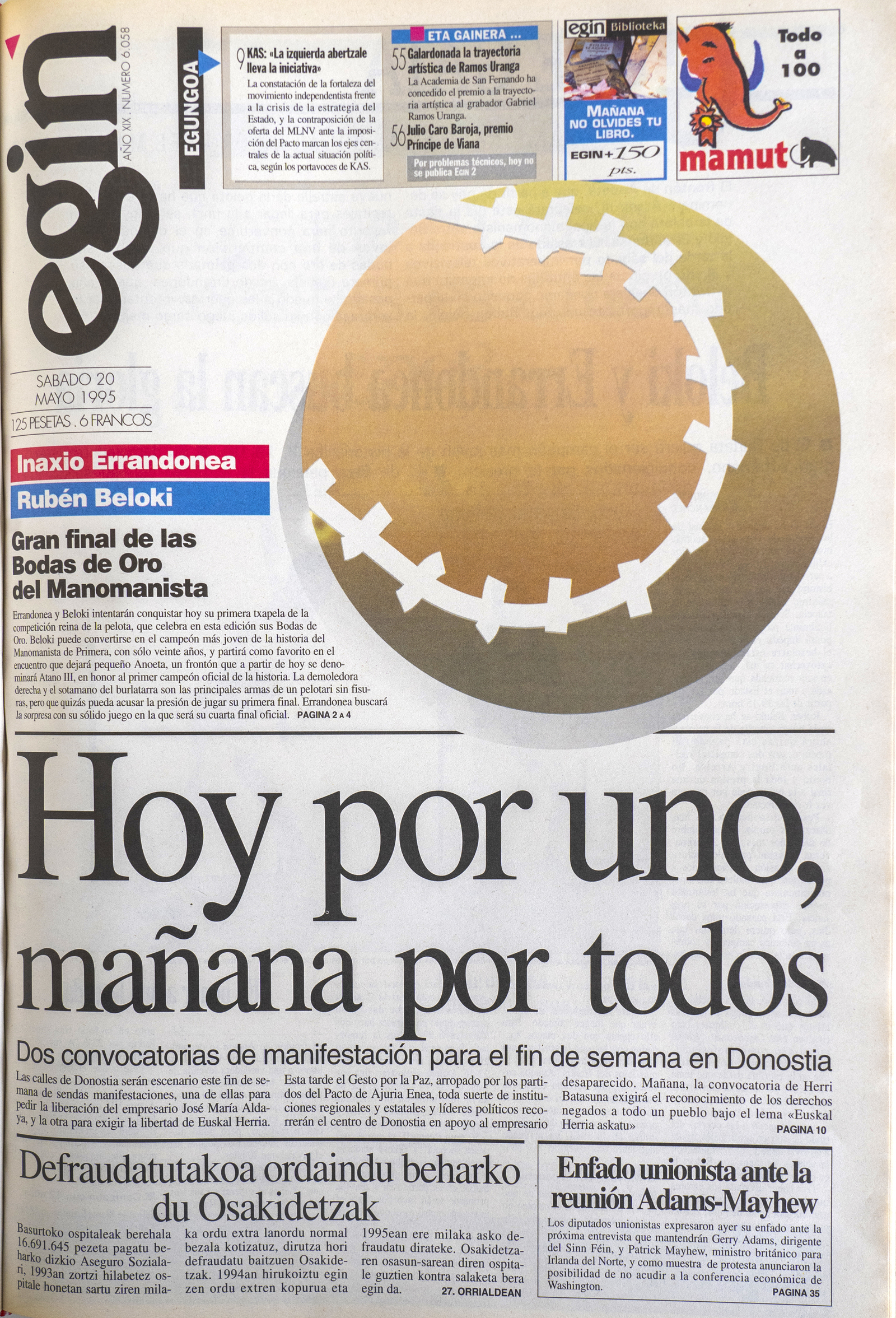 Portada de 'Egin' del 20 de mayo de 1995.