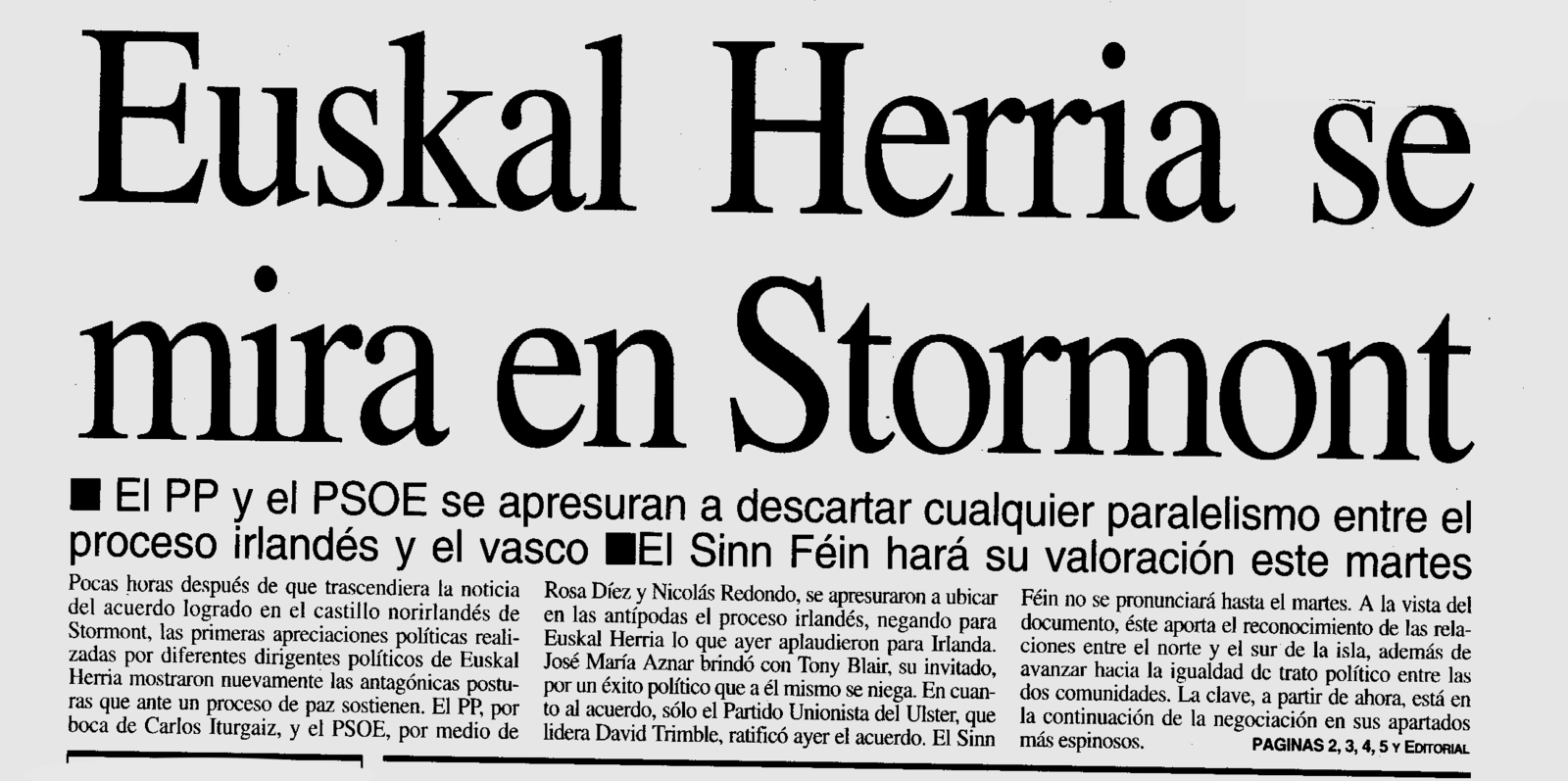 Y es que mientras esto ocurría en Irlanda, aquí, trescientos «intelectuales y artistas» intentaban conformar un grupo de presión para cerrar el paso a cualquier intento de resolución negociada. En febrero hicieron público un manifiesto y acusaron a la izquierda abertzale de ser un «movimiento fascista que pretende secuestrar la democracia».