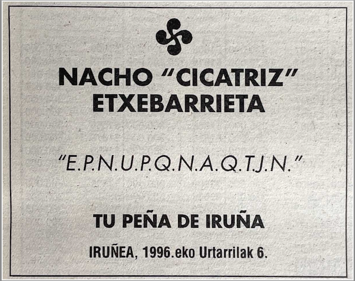 Haren heriotzak izan zuen 'Egin'-en azken anekdota bat. Iruñeko Natxoren lagunek eskela jarri zioten egunkarian, ulergaitza benetan. Hildako punk abeslariaren izenaren azpian «E.P.N.U.P.Q.N.A.Q.T.J.N» irakurri zitekeen. Egun batzuk beranduago, eskela jarri zutenen azalpena argitaratu zuen egunkariak. Natxoren izaerarekin bat zetorren azken adar jotzea izan zitekeen, baina ez zegoen horrelakorik. Bere lagunak ez zeuden konforme eskela hari 'Egin'-eko zuzendaritzak emandako aterabidearekin. Eskelen testuentzat arau oso zorrotzak zituela esan zien egunkariaren arduradunak, baina Iruñeko lagunak ez ziren ados «beren egunkariak» hartutako erabakiarekin.