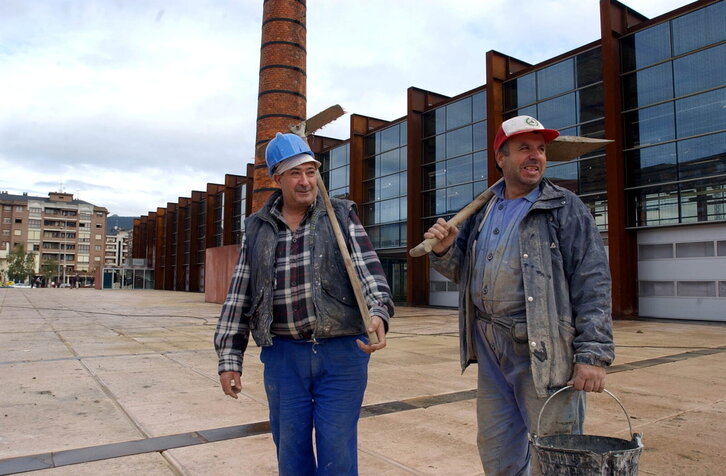 Langileak Durangoko Landako gunetik irteten inaugurazioaren atarian.