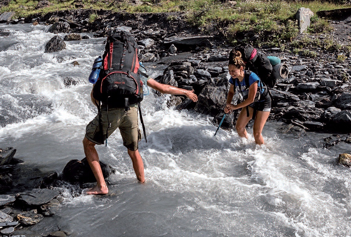 Jaitsieran, bi aldapa gogorri ekin diegu... hasierako igoera anker hura faltan hartzeko besteko gogorrak. Lehenengoa, pasabidean bertan abiatzen da. Bigarrena, mila metro ingurukoa da eta Kkhomitskhali errekaraino doa. Bataren eta bestearen artean, bost kilometro egin ditugu lau-lauan, eta belaunei arnasa apur bat eman diegu, Khidotanira iritsi garen arte, hau da, Khevsuretiko lehen artzain kanpamentua, Georgiako ekialdeko eskualde ikoniko horretan.