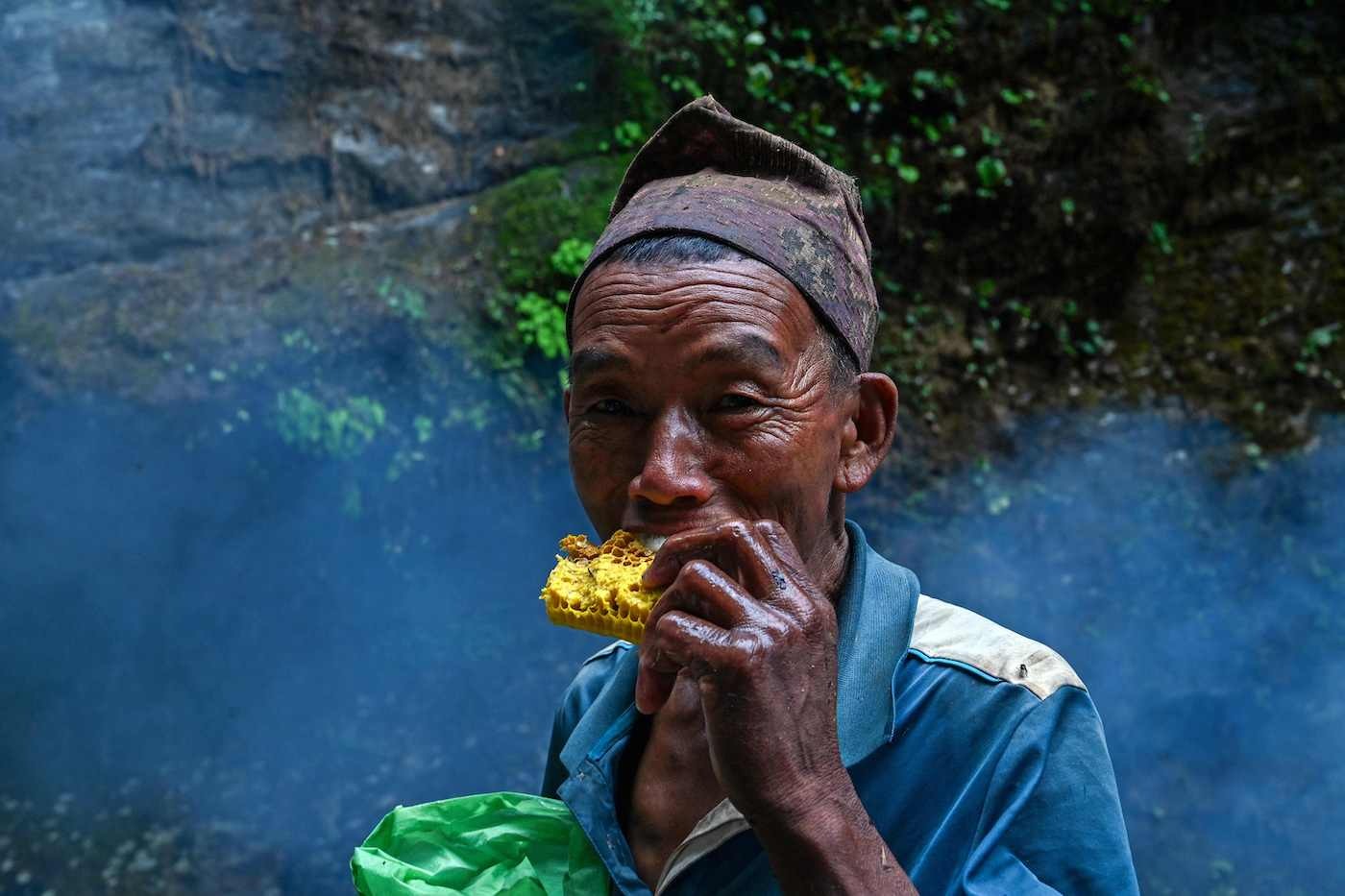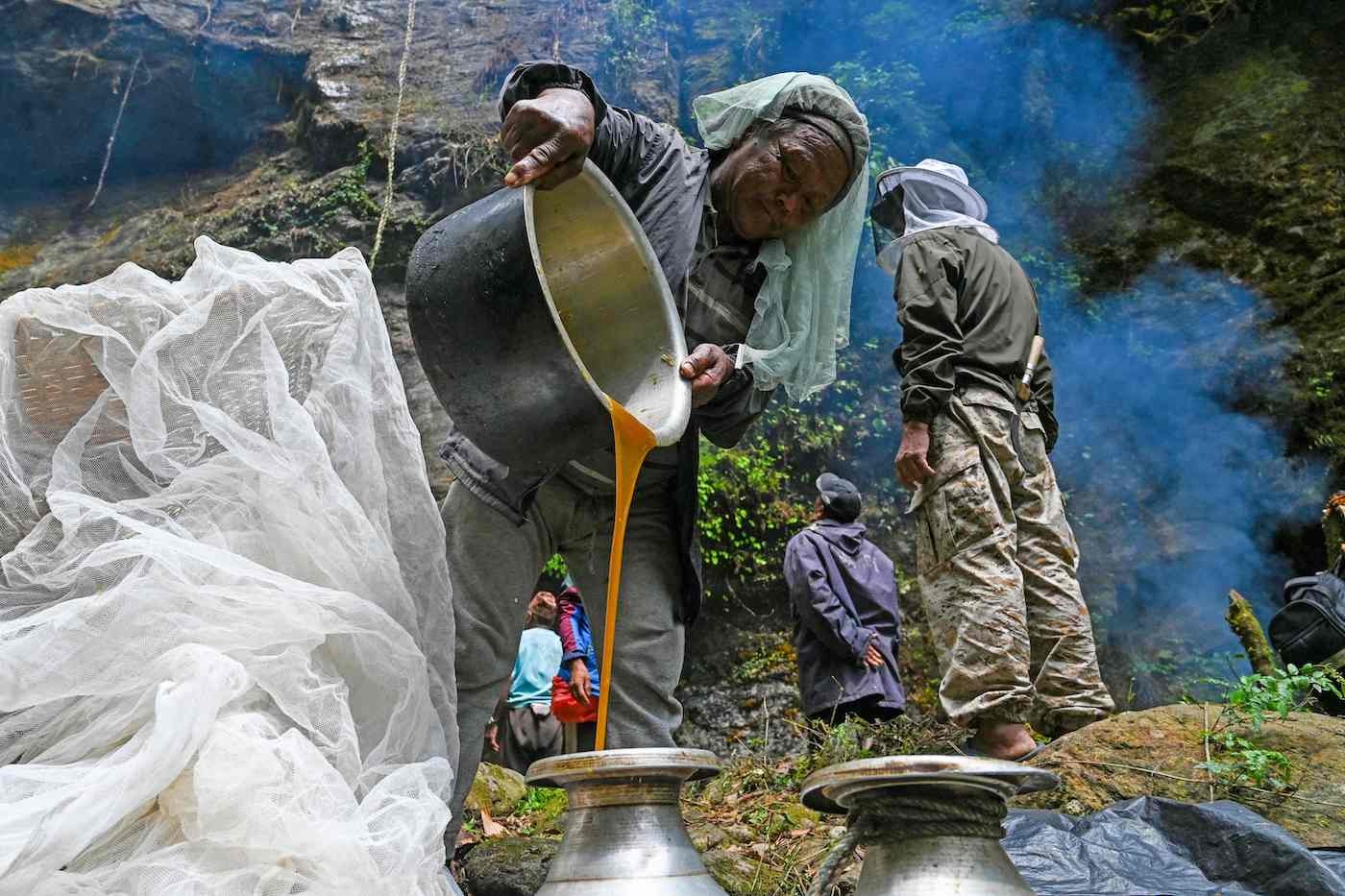 Debido a la gran altura a la que se produce, no es fácil recolectar. Es obra de la especie Apis laboriosa, la abeja más grande del mundo (tiene hasta 3 centímetros de largo), que suele estar presente en los desfiladeros más inaccesibles. Pero ese no es el único reto que tienen que enfrentar los cazadores de miel hoy en día, pues el cambio climático está planteando desafíos adicionales en estos remotos valles, a 100 kilómetros al noroeste de Katmandú.