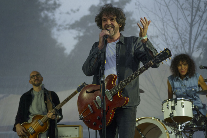 Con un exquisito quinteto que ofició en perfecta conjunción, y pleno de ánimo, voz y habilidades guitarreras, el creador navarro rubricó un entrañable recital compartido en plena complicidad con la amplia audiencia de los jardines chillidianos.