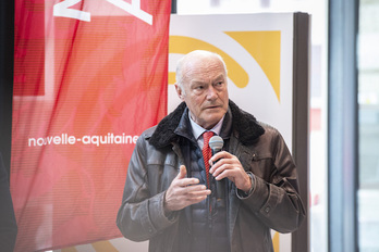 Alain Rousset, el 9 de marzo, durante su visita a las obras en la estación de tren de Baiona. (Guillaume FAUVEAU)