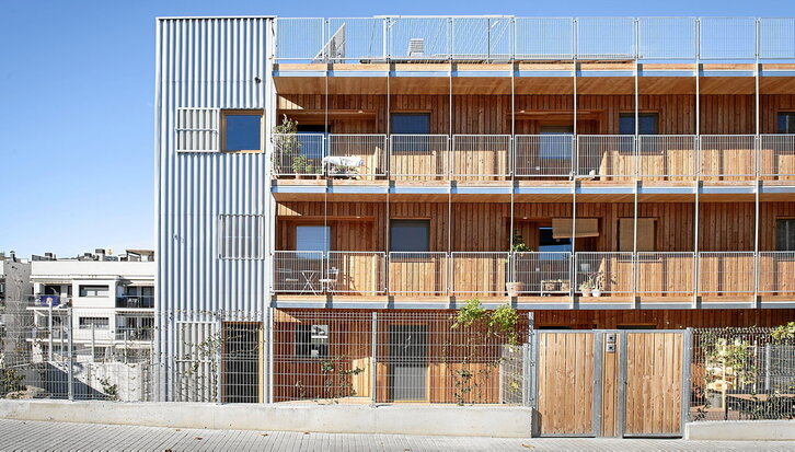 Más allá de proporcionar un hogar a las doce unidades convivenciales que lo habitan, el conjunto residencial permite el autoabastecimiento energético y alimentario del grupo. Los residentes tienen acceso a diversas áreas compartidas: espacios de coworking, lavanderías o terrazas ajardinadas, destinando un 45% de la superficie edificada a espacios colectivos.