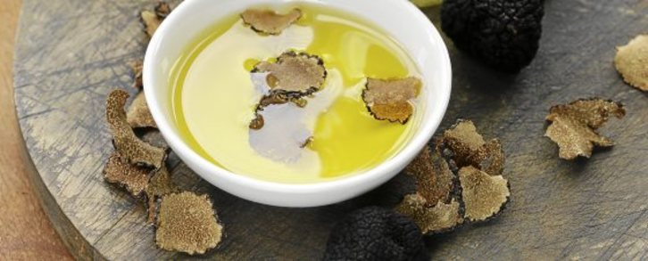 Aceite de trufa.. Si tenéis la suerte que tengo yo de tener una amiga que os quiera tanto como para aparecer de vez en cuando con un pedrusco de tuber melanosporum de regalo en casa, es una gran cosa tener aceite de trufa, máxime cuando algunos de los comerciales tienen ese olor químico que, desgraciadamente, suele venir del sulfuro de dimetilo. Calentad a unos 60º el aceite, introducid unas lascas de trufa (los compañeros de Gastronomía&Cía hablan de 20 gramos por litro), esperad unas horas y coladlo sin olvidaros de comer esas suculentas lascas sobre un huevo o una tostada. Usad el aceite en arroces, caza o, simplemente rociando una tortilla de patata. Una delicia.