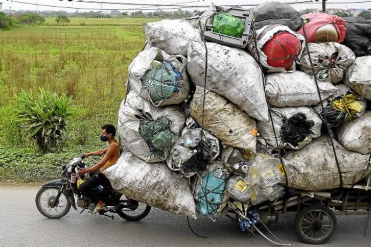 Hanoin hartutakoa da goian ikusten duzun irudia. Bitxia da ikustea nola motor arrunt baten atzean kiloka zabor garraiatu ahal diren. Bi gurpilen gainean doa gidaria eta atzeko erremolkeak darama gainean duen zaborraren zama osoa. Zamaren zama.