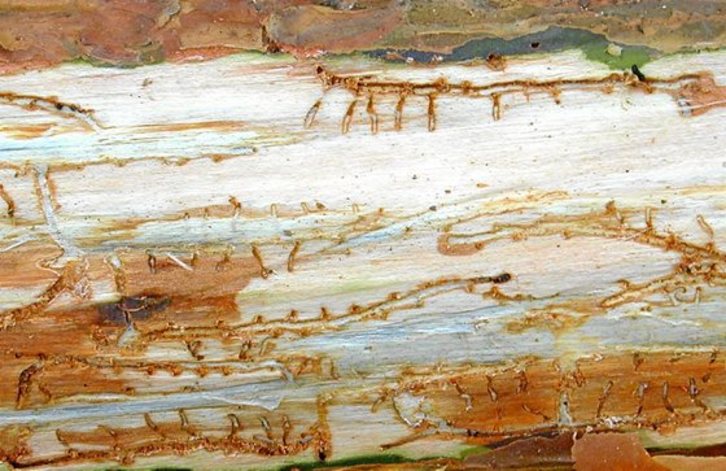 El ataque de los escólitos o escolítidos a los pinos es un problema internacional. Se trata de unos insectos diminutos que, sin embargo, pueden acabar no solo con el ejemplar más grande, si no también con bosques de coníferas, incluso pueden atacar especies frondosas. Las larvas de estos insectos minúsculos son unos gusanos blancos que muerden la parte llamada cambium. El cambium es una capa muy fina que está entre la corteza y la madera de los árboles, y es vital porque transporta la savia ya elaborada hacia las raíces, y es responsable del crecimiento del grosor de los tallos.